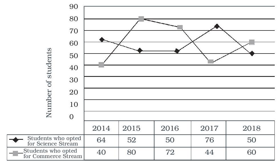 A school collected data from April 2014 to April 2018 comprising students of class XI who opted for either science stream or commerce stream