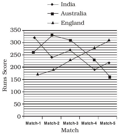 Runs scored by three different teams in five different cricket matches