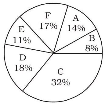 Percentage-wise Distribution of sales of mobile phones by 6 stores- A, B, C, D, E and F.Total number of mobile phones sold $\mathbf{=} \mathbf{6 6 0 0 0}$