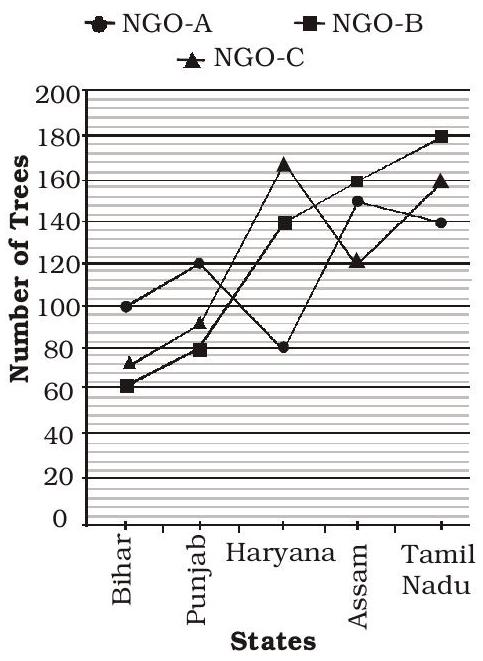 Number of trees planted by three different NGOs in five different States