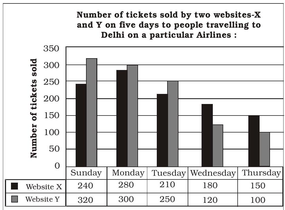 What is the difference between the total number of tickets sold on Tuesday and Wednesday together by website $X$ and the total number of tickets sold on the same days together by website $Y$ ?