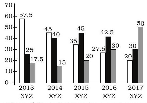 Directions : The following bar graph shows the percentage of jobs available in the countries $X, Y$ and $Z$ in different years. Study the bar graph and answer the questions given below.