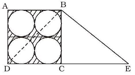 If the diameter of each circle is $14 cm$ and $DC=CE$, the area of $\triangle BDE$ is