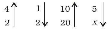 $\left.\therefore \begin{array}{c}2: 4 \ 1: 2 \ 20: 10\end{array} \right. :: 5: x$